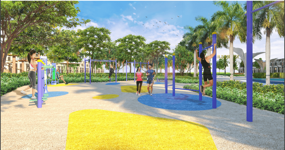 Một không gian lý tưởng dành riêng cho những ai yêu thích vận động, khu thể thao ngoài trời với những dụng cụ, thiết bị tập luyện được trang bị sẵn.