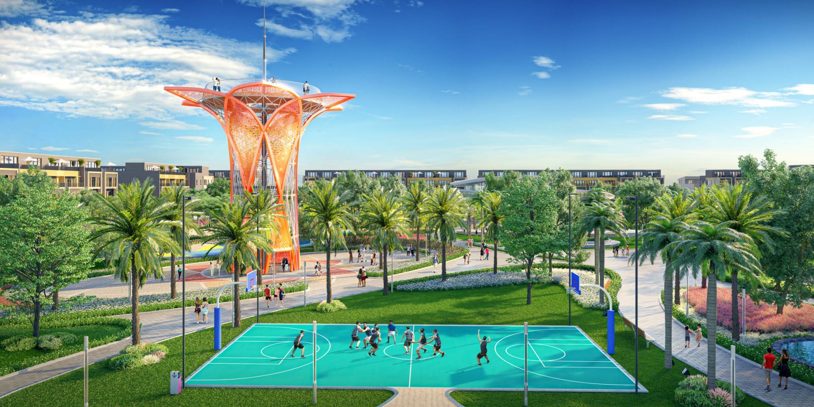Hãy cùng vận động rèn luyện sức khỏe, nâng cao thể lực tại khu vực sân thể thao đa năng có diện tích 162m2; chiều rộng: 9m; chiều dài: 18m của Gem Sky Park.